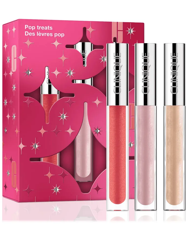 Три полноразмерных блеска Clinique Pop Plush Creamy Lip Gloss в праздничных лимитированных оттенках. Обеспечивают яркий блеск и увлажнение на весь день. Удобный аппликатор с изгибом для точного нанесения.